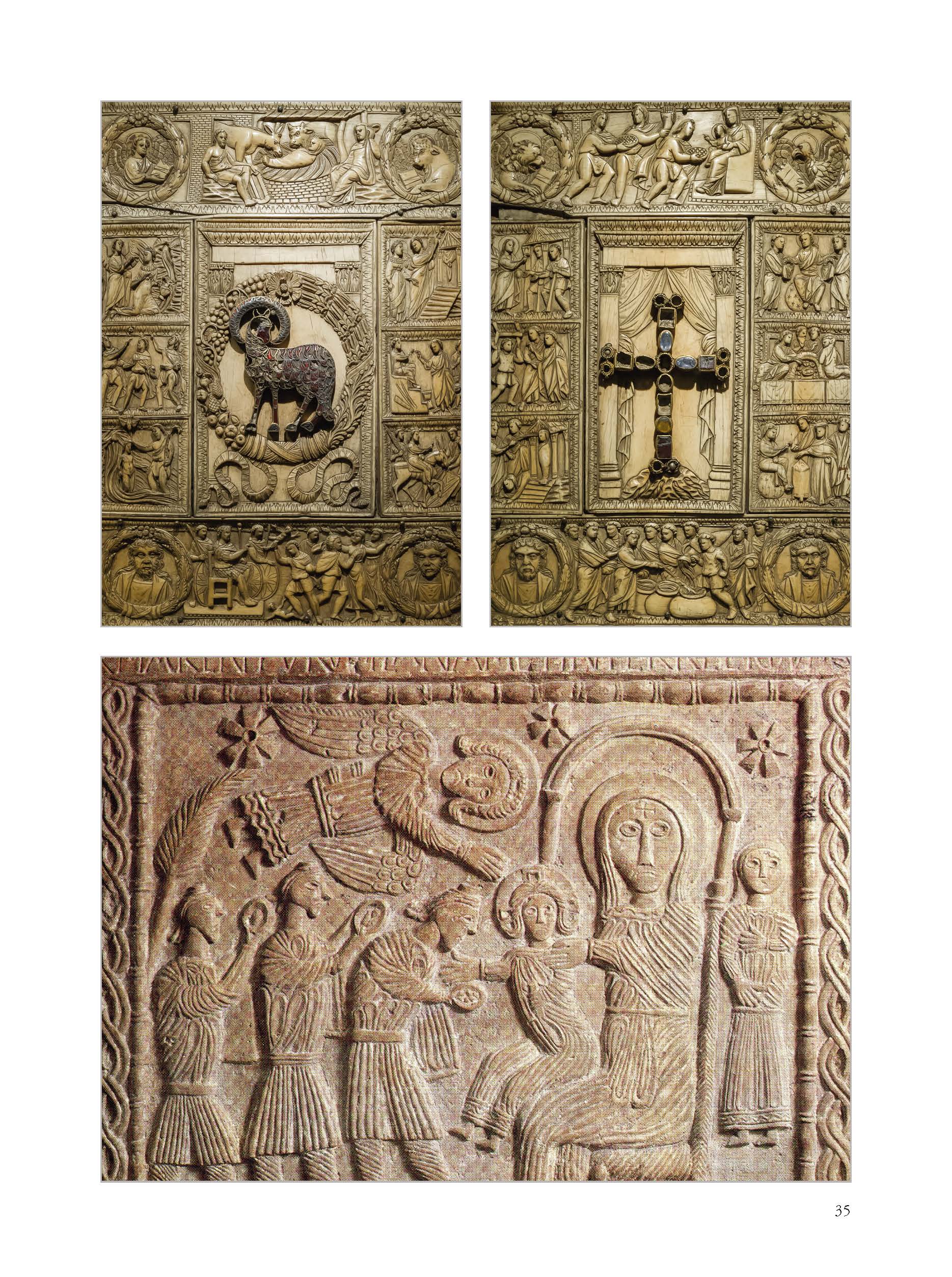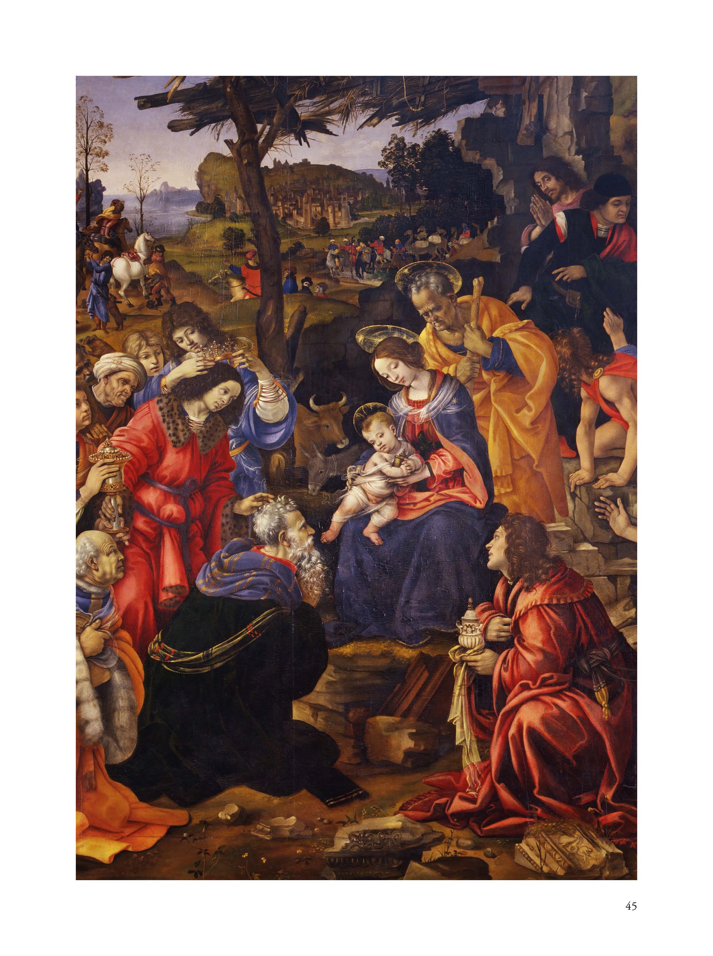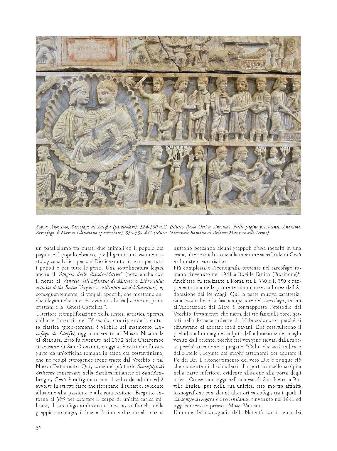 Il saggio costituisce un’analisi critica dell’iconografia del tema della Natività e dell’Adorazione dei Magi dall’avvento del cristianesimo alla contemporaneità. In maniera sintetica l’autore ripercorre le tappe salienti delle differenti periodizzazioni storiche, indugiando su alcune figure cardine dell’arte europea e sulle differenti tecniche esecutive delle opere che hanno sviluppato questi specifici temi, spaziando dai bassorilievi funerari del IV-V secolo alle porte bronzee del secolo XI, dalle vetrate medievali ai gradi cicli pittorici giotteschi, dai settecenteschi presepi di carta agli arazzi dell’Ottocento. Sebbene per capisaldi, il testo sottolinea anche le correlazioni esistenti tra i registri narrativi delle singole maestranze e i testi sacri o agiografici ai quali gli autori si sono direttamente ispirati, o ai quali hanno fatto tacitamente riferimento, influenzati dalle più complesse istanze culturali e religiose europee. Nel testo non mancano alcuni approfondimenti iconografici su opere di ambito milanese-lombardo, che sottolineano gli influssi esercitati dalla spiritualità dei singoli ordini religiosi, e le manifestazioni artistiche appartenenti al più vasto territorio brianteo, imprescindibilmente legate anche alle reliquie dei Re Magi venerate nella fascia meridionale della provincia monzese.